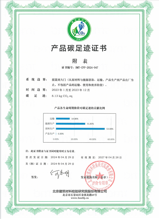 圣象地板(句容)有限公司統(tǒng)計(jì)期2023年1月1日至2023年12月31日,系統(tǒng)邊界:搖籃到大門,多層實(shí)木復(fù)合地板產(chǎn)品各過程對(duì)碳足跡的貢獻(xiàn)比例:在系統(tǒng)邊界內(nèi),原材料生產(chǎn)對(duì)全球變暖環(huán)境影響的貢獻(xiàn)最大,約為53.04%,其次是能源生產(chǎn)對(duì)全球變暖環(huán)境影響貢獻(xiàn)占比約為31.80%,運(yùn)輸對(duì)全球變暖環(huán)境影響貢獻(xiàn)占比約為14.86%,產(chǎn)品生產(chǎn)對(duì)全球變暖環(huán)境影響的貢獻(xiàn)占比最小,占比約為0.30%。