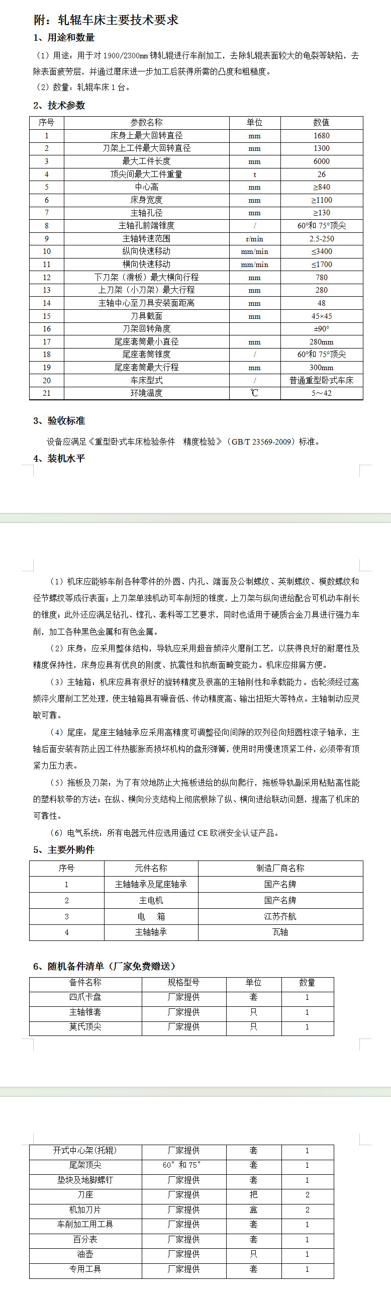 ①、申請人資質(zhì)要求:投標(biāo)方具備軋輥車床銷售業(yè)績,專業(yè)生產(chǎn)軋輥車床廠家,提供證明材料(合同、發(fā)票)。