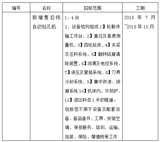 大亞車輪制造有限公司新增售后線自動鉆孔機(jī)項目招標(biāo)公告