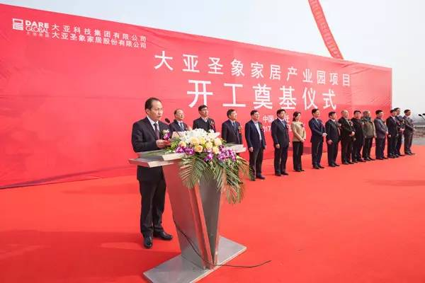 奠基儀式由宿遷市宿城區(qū)區(qū)委副書記、區(qū)長張輝主持,石峰代表中國林產(chǎn)工業(yè)協(xié)會(huì)對(duì)大亞科技集團(tuán)表示熱烈的祝賀!過利平代表市委市政府向大亞圣象家居產(chǎn)業(yè)園項(xiàng)目的開工奠基表示熱烈的祝賀并衷心預(yù)祝大項(xiàng)目早日竣工投產(chǎn)。大亞圣象產(chǎn)業(yè)園項(xiàng)目啟動(dòng)建設(shè),是宿遷市產(chǎn)業(yè)發(fā)展上的一件大事,對(duì)擴(kuò)大宿遷經(jīng)濟(jì)總量、促進(jìn)群眾就業(yè)發(fā)揮重要作用。大亞科技集團(tuán)董事長陳曉龍表示,在宿遷市市長王天琦及各級(jí)政府部門的支持下,努力把該項(xiàng)目建設(shè)成全球人造板行業(yè)精品工程,為推動(dòng)宿遷市產(chǎn)業(yè)升級(jí)轉(zhuǎn)型和經(jīng)濟(jì)發(fā)展做出積極貢獻(xiàn)!