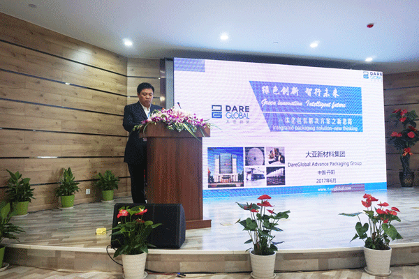尤其值得一提的是,江蘇大亞新型包裝材料有限公司總經(jīng)理張德林為在座的嘉賓介紹了大亞新材料的發(fā)展歷程、基本背景、銷售情況、技術(shù)實力與戰(zhàn)略合作伙伴,同時從大亞新材料自身視角來做詳細的SWOT分析,針對優(yōu)勢、劣勢、機遇與不足,張總提出了一體化包裝解決方案之新思路。未來大亞將以“綠色創(chuàng)新,智行未來”為目標愿景,追求卓越、挑戰(zhàn)極限、創(chuàng)新發(fā)展、敢于擔當。