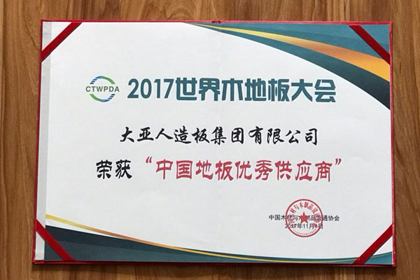 會議最后的頒獎盛典點燃了會議的氣氛,大會主辦方分別頒發(fā)了中國地板國家品牌、中國地板基材優(yōu)應(yīng)商、地板及人造板專利獎等多項重磅榮譽,對為中國地板和人造板行業(yè)做出突出貢獻(xiàn)的企業(yè)和個人做出了表彰。大亞人造板集團作為行業(yè)龍頭企業(yè),獲評中國地板基材優(yōu)秀供應(yīng)商,另有一項專利獲得金獎稱號。