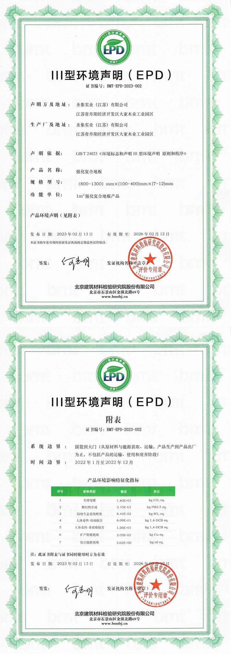 圣象實(shí)業(yè)(江蘇)有限公司III型環(huán)境聲明(EPD)